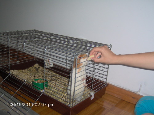 Pensando bem, eu não gostei lá muito do modo como o Pai Jorge me olhou quando cheguei a casa dentro da gaiola pela mão da Raquel. Vi logo que tinha de o convencer a aceitar a minha presença, sem reservas, sim porque isto de ser uma “porca da Índia”, está a ser difícil nos dias que correm! A minha “estadia” tem custos, sim senhor, isto é, se se dignarem a alimentar-me como deve ser! Com o passar do tempo acho que o convenci! Ele agora aproxima-se da gaiola e vem dar-me á mão pedaços de maçã de que eu gosto muito, e vai falando comigo de um modo que eu entendo como amigo! Quem diria…